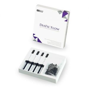 Zatékavý světlem tuhnoucí kompozitní materiál DiaFil Flow lze použít pro výplně III. , V. a IV . třídy a jako podložkový materiál I. a II. třídy, rovněž také jako pečetidlo fisur. Materiál se vyznačuje minimální změnou objemu po polymeraci a je vysoce radioopakní. Nabízí dobrý poměr kvality a ceny.