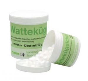 Kuličky z velmi měkké, nebělené chlorové bavlněné vlny. Dobře absorbují vlhkost.
