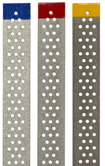 Perforované pásky pro opracování aproximálních ploch. Proužky jsou ohebné, trvanlivé, tenké a agresivnější než proužky sypané oxidem hlinitým. Perforovaný design umožňuje přesněji pracovat, během práce umožňuje lepší kontrolu.