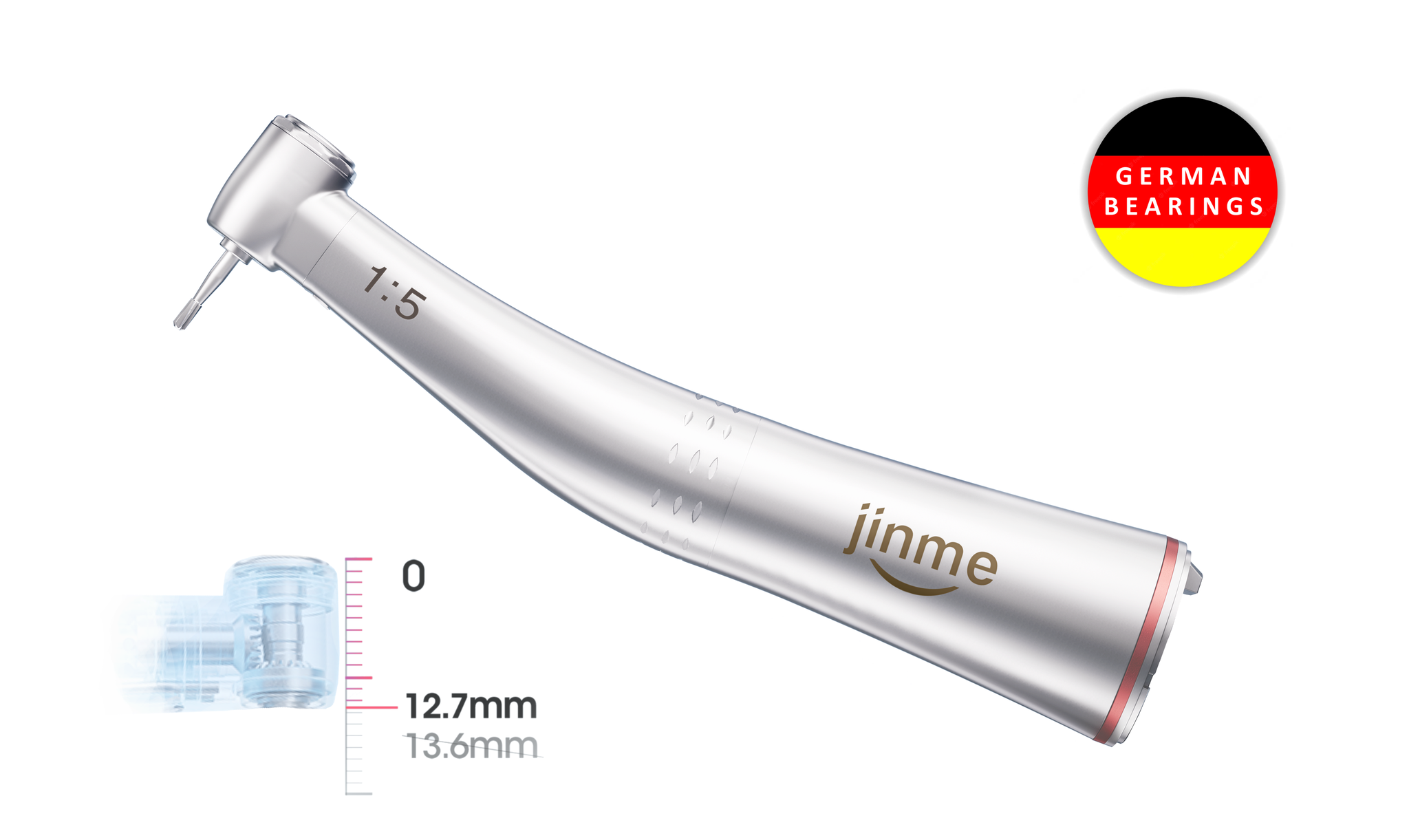 Nová generace modelů násadců JINME kombinuje inovace s kompaktním designem, což má za následek vyšší výkon a ergonomii. Vynikající úchop, který umožňuje optimální pracovní pohodlí s menším namáháním ruky, paže a ramene.Designem tvarů nástroje s ohledem na hygienická a bezpečnostní hlediska za použití nejpokročilejších technologií a kvalitních kovových slitin jsme udělali kolénkový kolénko JINME 1:5L maximálně ergonomické , pohodlnější pro lékaře a bezpečnější pro pacienta.