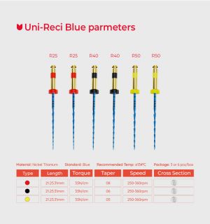 - reciproční Ni-Ti nástroje pro bezpečné a rychlé opracovávání speciální tepelná úprava nástroje s vyšší flexibilitou průřez nástroje S-shape a vysokou řeznou účinností