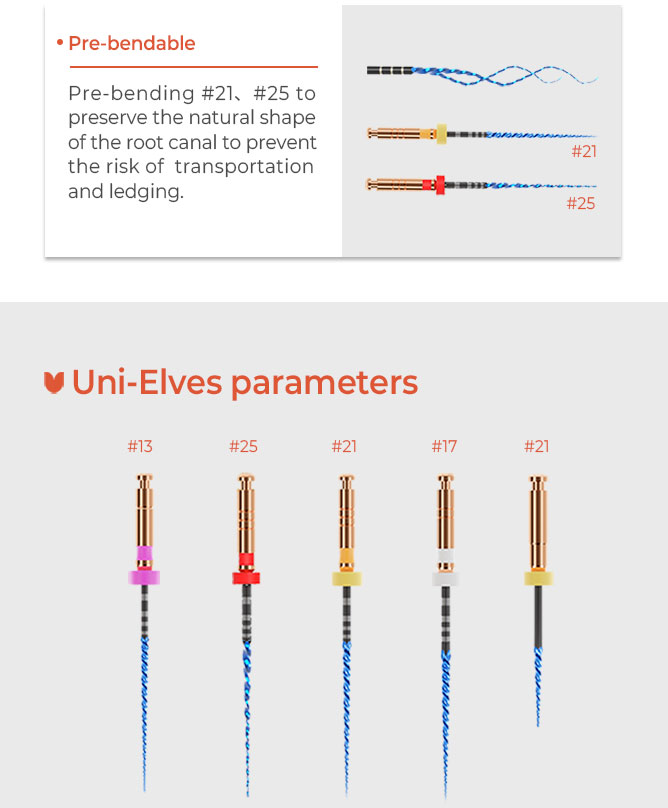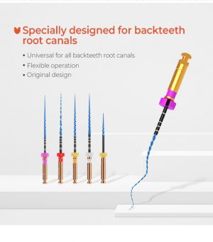 - rotační systém se speciální tepelnou úpravou Martenzitem vyníkající odolnost a flexibilita pro náročné anatomie komplexní řada od koronárního flaringu a glide-path až po ISO 50