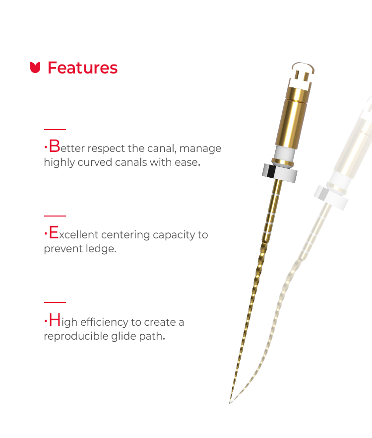- reciproční Ni-Ti nástroj pro iniciální opracování kanálku vhodné pro vytvoření glide-path u obtížné anatomie vysoká rezistence proti cyklické únavě