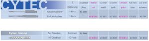 Standard box obsahuje: 2x předvrtávač (spreader), 5 x kalibrační frézka, 1x měřící šablonu, 20 ks FRC čepů ( 3 ks červené 1,0 mm, 5 ks bílé 1,2 mm; žluté 1,4 mm; modré 1,8 mm; a 2 ks černé 2,2 mm - celkem 20 ks)