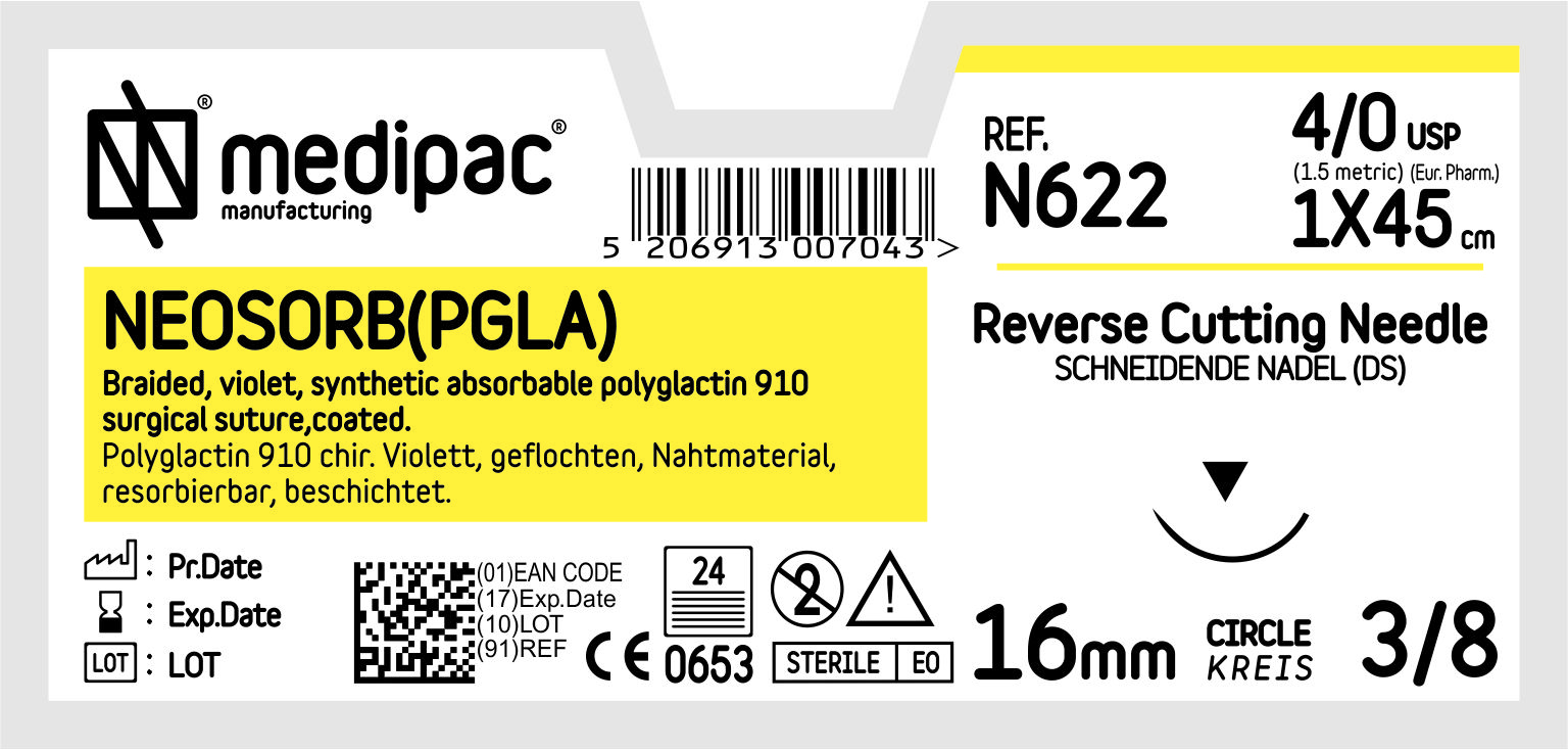 Neosorb PGLA - USP 4/0, EP 1.5, jehla řezná 3/8