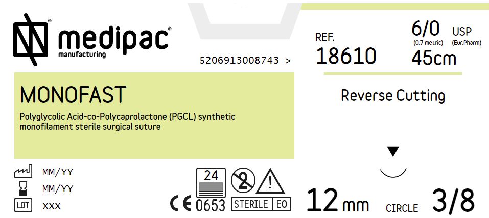 MONOFAST - USP 6/0, EP 0.7, jehla řezná 3/8