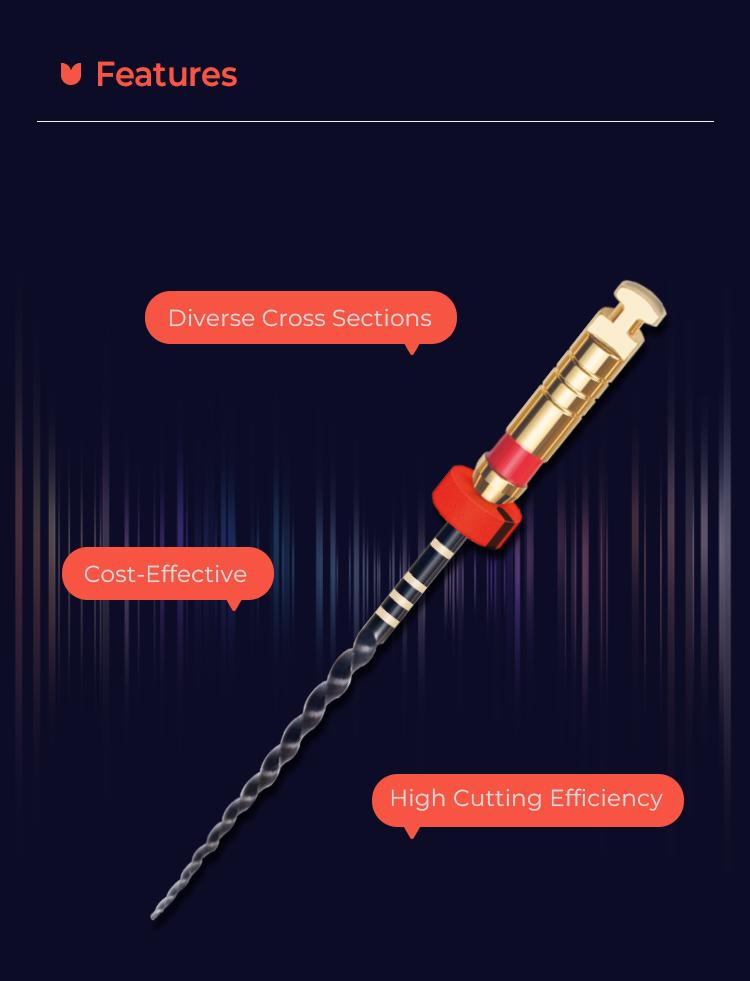 -vspeciální rotační systém s vysokou flexibilitou pro náročné anatomie tepelně upravená slitina Ni-Ti Black-wire variabilní průřezy jednotlivých nástrojů