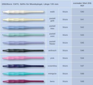 Držátko zrcátka určené pro intraorální inspekce nebo kontroly.