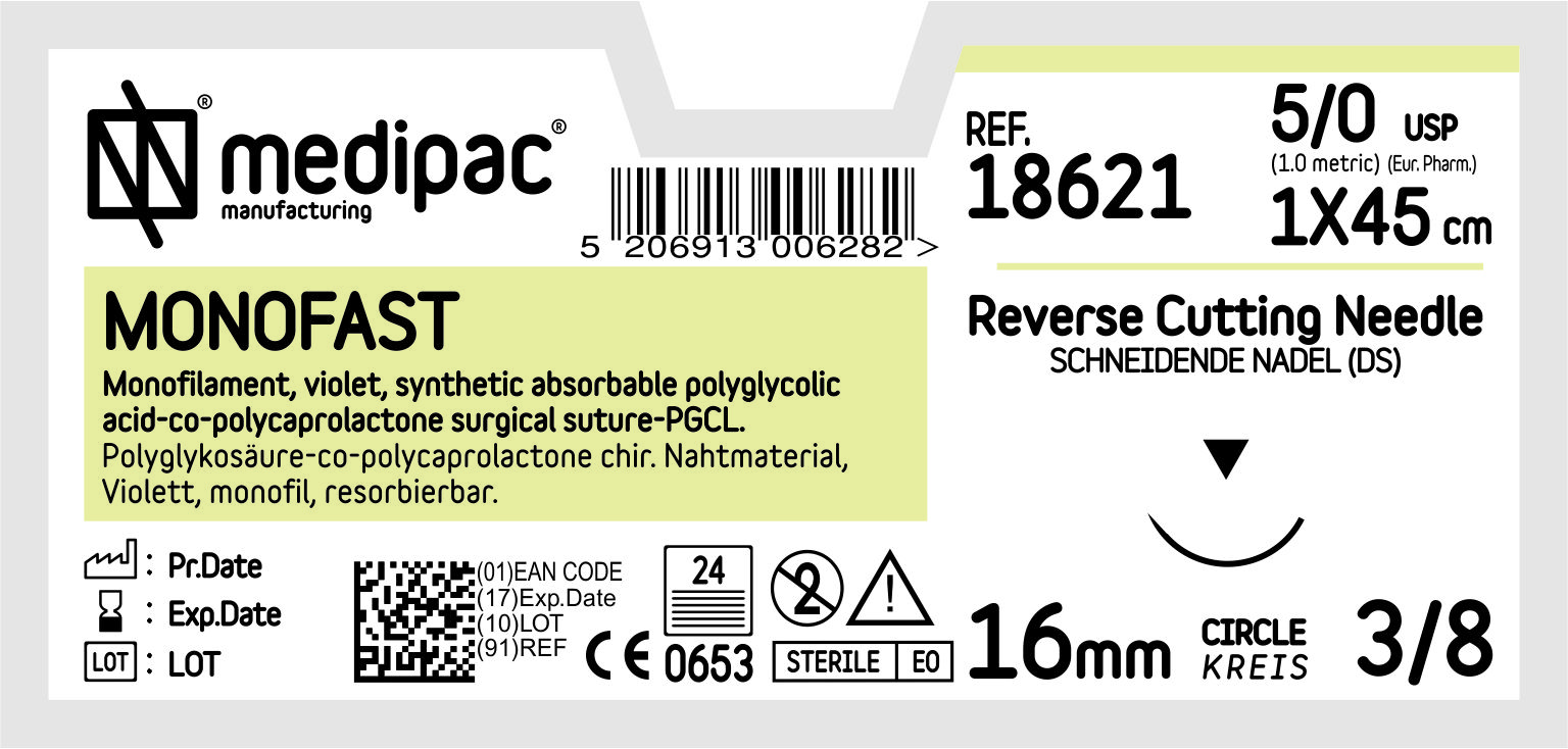 MONOFAST- USP 5/0, EP 1.0, jehla řezná 3/8