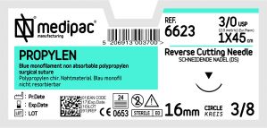Chirurgické šití - Propylen-USP 3/0, EP 2.0, jehla řezná 3/8