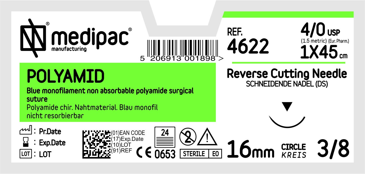 Chirurgický šicí materiál vhodný k šití měkkých tkání, na použití při stomatochirurgických zákrocích, všeobecné chirurgii, mikrochirurgii, ortopedii, břišní chirurgii, sutuře svalů a fascií, plastické chirurgii, není vhodný pro kardiovaskulární, oftalmologické a neurologické zákroky. Polyamidová sutura není adherentní k tkáním a lze ji snadno odstranit. Obvykle se odstraňuje do 30 dní od implantace.
